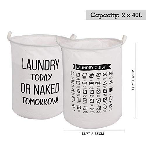 LessMo 2PCS 17.7" Wäschekorb Sortierer – Faltbar - 2er Set Wäschesammler spart Zeit beim Sortieren - Wäschesack - Wäschekörbe - Laundry Baskets - 45 x 35 cm (Weiß, Verdickt 17,7 "/ Medium)
