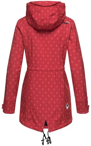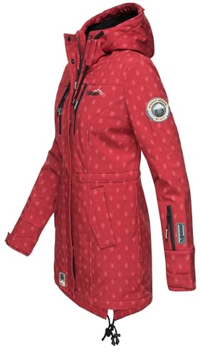 MARIKOO Damen Softshelljacke (XS-3XL) mit Kapuze - Wasserabweisend, Fleece innen, Tasche am Arm, Mantel, Warme Jacke Frauen B614 (S, Rot-Muster)