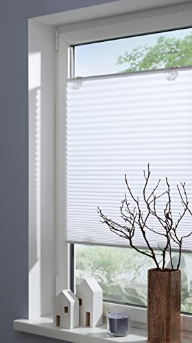 GARDINIA Solo Plissee ohne Bohren, Mit Saugnäpfen, Blickdichtes Falt-Rollo, Inkl. Aller Montage-Teile, 2 Bedienschienen aus Aluminium, Weiß, 50 x 130 cm