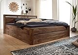 MASSIVMOEBEL24.DE Toronto Bett mit Schublade 160x200, Farbe:Dunkelbraun gebeizt