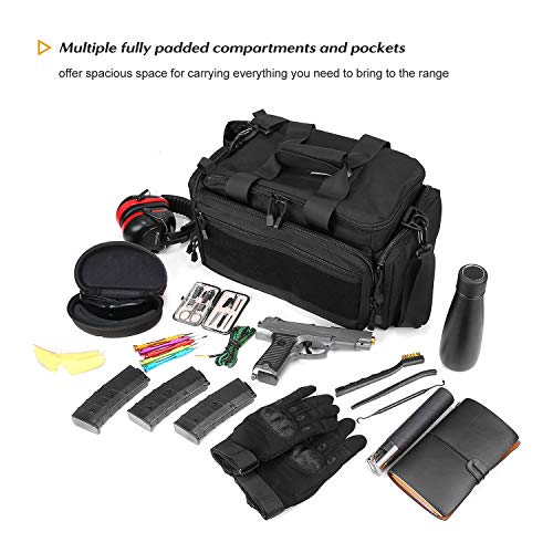 ProCase Taktisch Waffentasche, Deluxe Gepolstert Pistol Shooting Range Reisetasche Große Pistole Magazin Munition Waffen Zubehör Beutel fürJagd Schießstand Sport -Schwarz