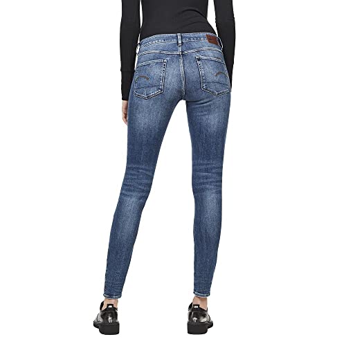G-STAR RAW Damen 3301 Mid Skinny Jeans, Blau (faded indigo destroyed D05889-8968-A949), 24W / 32L