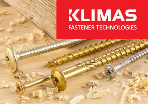 KLIMAS Holzschrauben Torx - Tellerkopfschrauben TX Gelb - Flachkopfschrauben Holz - Schrauben Set für Dachkonstruktion - 8x180 mm - 50 Stück