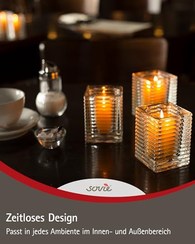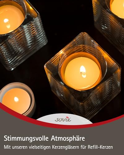 Sovie CANDLES Kerzenglas Cube Frostig Milchig - Glas für Refill Kerzen - Kerzen Deko für Innen & Außen - Zeitloses Design - Schützt Tisch & Dekoration - B 7 x H 9,5cm