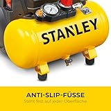 Stanley Kompressor DN200/8/6 8 Bar - Flüsterkompressor mit 6L Tank - Ölfreie Saugkompressor 105L/Min - Mit Griff und Anti-Rutsch-Füßen - Geeignet für Druckluftwerkzeuge WDST10086