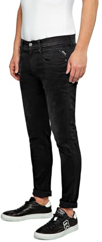 Replay Herren Jeans Anbass Slim-Fit Hyperflex Cloud mit Stretch, Black 098 (Schwarz), 28W / 32L