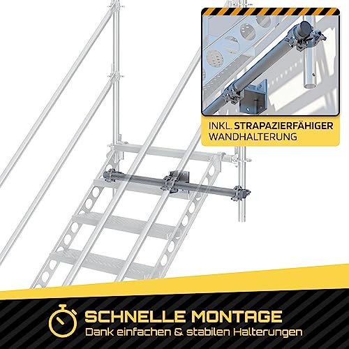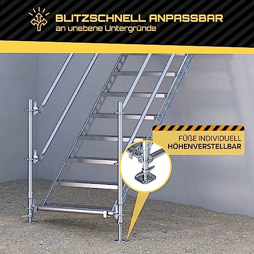 Scafom-Rux Bautreppe Außentreppe feuerverzinkt für mind. 2,15 m Höhenunterschied mit Wandbefestigung höhenverstellbar