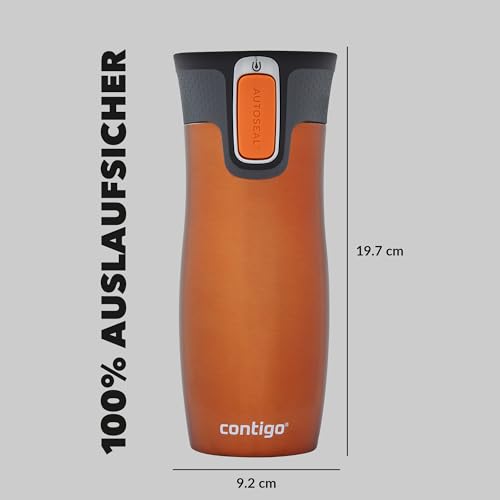 Contigo Thermobecher West Loop Autoseal, Edelstahl Isolierbecher, Reisebecher, Kaffebecher To Go, auslaufsicher, 100% dicht, hält bis zu 5h heiß/12h kalt, 470 ml, BPA frei, Tangerine