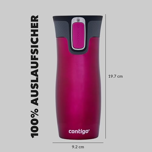 Contigo Thermobecher West Loop Autoseal, Edelstahl Isolierbecher, Reisebecher, Kaffebecher To Go, auslaufsicher, 100% dicht, hält bis zu 5h heiß/12h kalt, 470 ml, BPA frei, Raspberry