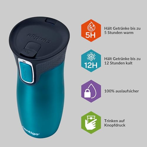 Contigo Thermobecher West Loop Autoseal, Edelstahl Isolierbecher, Reisebecher, Kaffebecher To Go, auslaufsicher, 100% dicht, hält bis zu 5h heiß/12h kalt, 470 ml, BPA frei, Bay