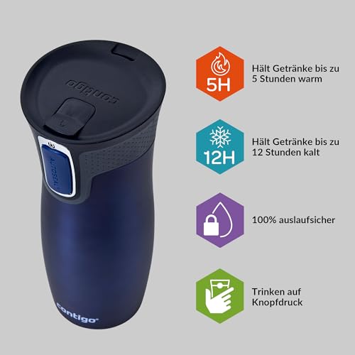 Contigo Thermobecher West Loop Autoseal, Edelstahl Isolierbecher, Reisebecher, Kaffebecher To Go, auslaufsicher, 100% dicht, hält bis zu 5h heiß/12h kalt, 470 ml, BPA frei, Monaco