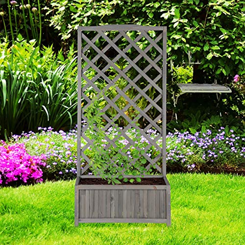 Relaxdays - Rankkasten mit Rankgitter, wetterfest, Holz, f. Balkon, Garten, Rosen, Wein, 25 l Kübel, 147cm Rankhilfe, grau