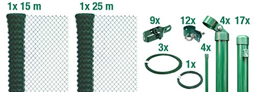 Alberts 634766 Maschendrahtzaun als Zaun-Komplettset, zum Einbetonieren | verschiedene Längen und Höhen | grün | Höhe 125 cm | Länge 40 m