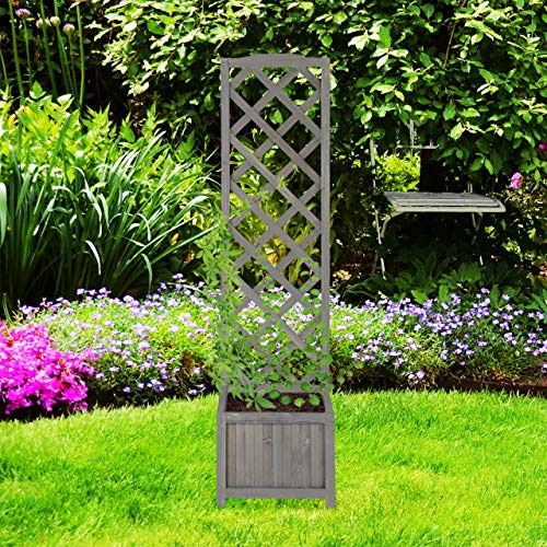 Relaxdays - Rankkasten mit Rankgitter, wetterfest, Holz, f. Balkon, Garten, Rosen, Wein, 35 l Kübel, 150cm Rankhilfe, grau