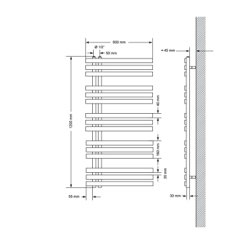 LUXEBATH Ecd Germany Iron em Design Badheizkörper - 600 x 1400 mm - Anthrazit - Designheizkörper Paneelheizkörper Heizkörper Handtuchwärmer Handtuchtrockner