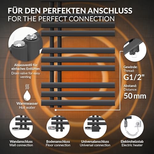 ECD Germany Iron EM Design Badheizkörper - 600 x 1400 mm - Anthrazit - Designheizkörper Paneelheizkörper Heizkörper Handtuchwärmer Handtuchtrockner Heizung Radiator