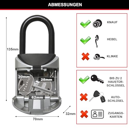 Master Lock Tragbarer Mini-Schlüsseltresor [XS] [mit Bügel] – Schlüsselsafe mit Bügel grau Einheitsgröße