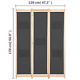 vidaXL Holz Raumteiler 3-TLG. Paravent Trennwand Umkleide Sichtschutz Spanische Wand Raumtrenner Stellwand Grau 120x170x4 cm Stoff Klappbar Platzsparend