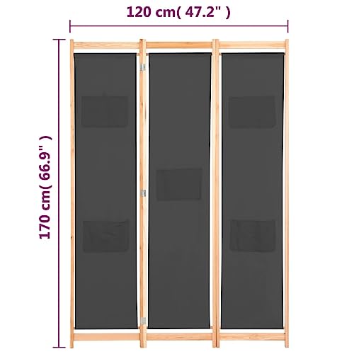 vidaXL 3-teiliger Raumteiler Grau 120 x 170 x 4 cm Stoff