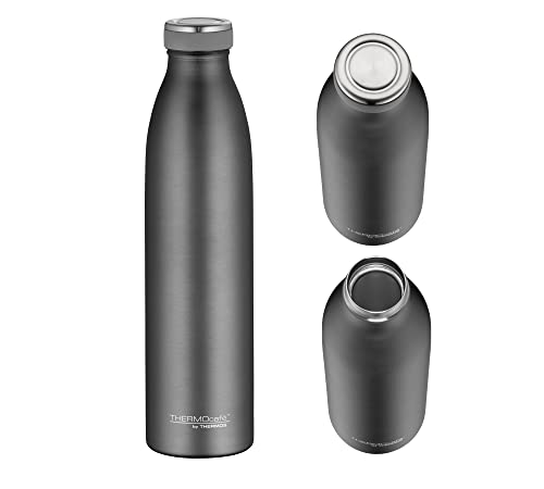 THERMOcafé by THERMOS TC BOTTLE stone grey mat 0,75l, Isolierflasche aus Edelstahl, kohlensäurefest, 12h heiß 24h kalt, Auslaufsicher, für Schule, Unterwegs & Büro