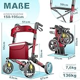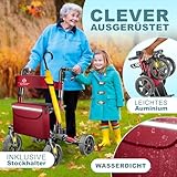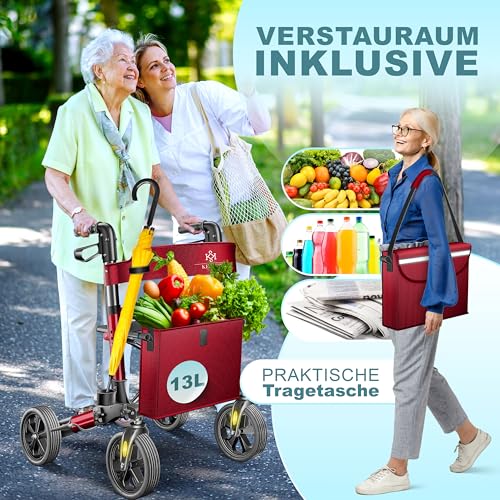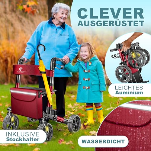 KESSER Leichtgewicht Rollator faltbar mit Sitz, Griff, Tasche, schmal für Senioren Wohnung, Klappbar, Höhenverstellbar, Reflektoren | All Gelände Reifen Indoor-& Outdoor, Gehhilfe, Laufhilfe, Bordeaux