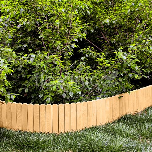 Floranica Rasenkante Höhe 40 cm Natur 200 cm Lang Gartenzaun Flexibler Holzzaun Gartendeko Gartenpalisade für Beeteinfassung, Mähkante Rollborder, Steckzaun Blumenbeet Umzäunung für Garten
