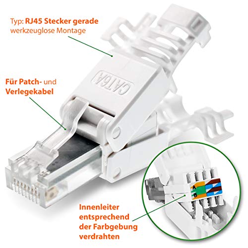 40 Stück Netzwerkstecker werkzeuglos CAT6A RJ45 LAN UTP Kabel Stecker ohne Werkzeug werkzeugfrei CAT6 CAT5 CAT7 Verlegekabel Patchkabel Netzwerkkabel Toolless Modular Plug Connector Crimpstecker