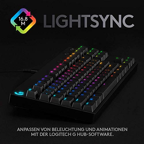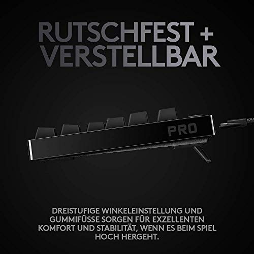Logitech G PRO Mechanische Gaming-Tastatur – Portable Tenkeyless Design, abnehmbares Micro-USB-Kabel, GX Blue Clicky Switches, LIGHTSYNC RGB Backlit Keys, QWERTZ Deutsch, PC,Mac - Schwarz
