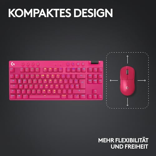 Logitech G PRO X TKL LIGHTSPEED kabellose Gaming-Tastatur, ultramobiles Design ohne Ziffernblock, LIGHTSYNC RGB, PBT-Tastenkappen, Tactile Switches (GX Brown), QWERTZ Deutsches, PC - Magenta
