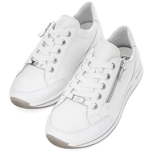 Sneaker ARA OSAKA, Damen, Gr. 3,5 (36), gold (weiß, goldfarben, camelfarben), Glattleder, Ziegenveloursleder, Schuhe Sneaker, Freizeitschuh, Halbschuh, Schnürschuh