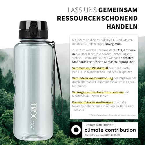 720°DGREE Trinkflasche 1,5l “uberBottle“ crystalClear +Sieb - BPA-Frei - Wasserflasche für Sport, Gym, Fitness, Outdoor, Wandern - Große Sportflasche aus Tritan - Leicht, Stoßfest, Wiederverwendbar