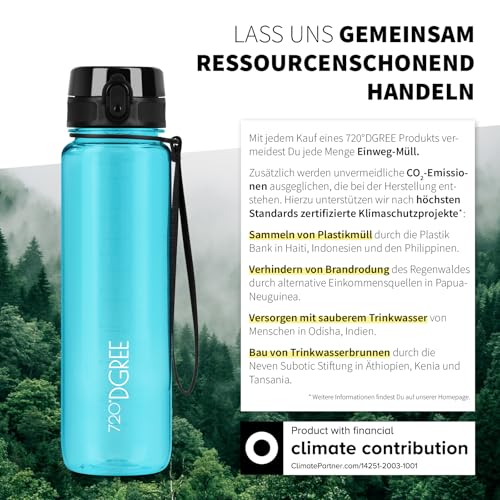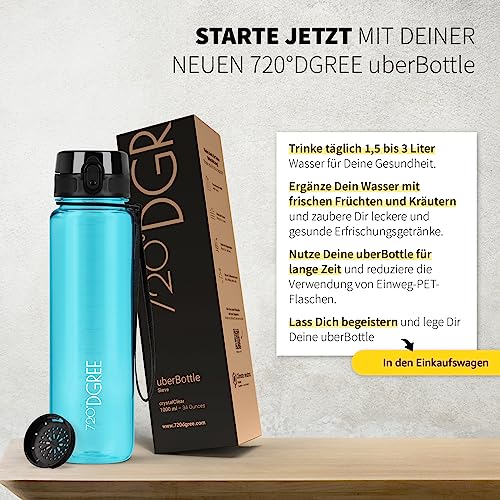 720°DGREE Kinder Trinkflasche 500ml “uberBottle“ crystalClear +Sieb - BPA-Frei, Auslaufsicher - Für Schule, Sport, Fitness - Schmale Wasserflasche aus Tritan - Leicht, Stoßfest, Wiederverwendbar