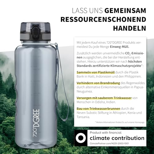 720°DGREE Trinkflasche 1,5l “uberBottle“ crystalClear +Sieb - BPA-Frei - Wasserflasche für Sport, Gym, Fitness, Outdoor, Wandern - Große Sportflasche aus Tritan - Leicht, Stoßfest, Wiederverwendbar