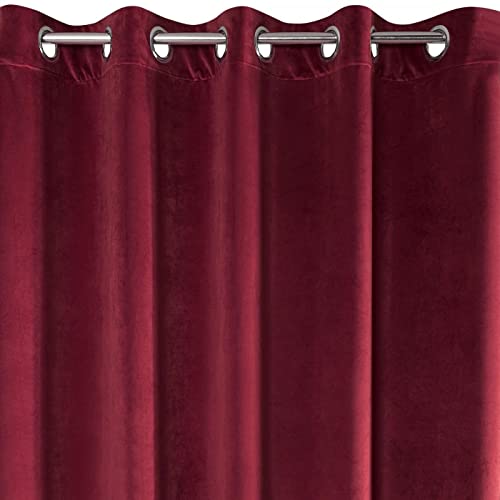 Eurofirany Villa Vorhang Samt Velvet Weich 10 Ösen-1 STK. Edel Gardine Dick 290 g/m2 Elegant Glatt Einfarbig Flauschig Modern Klassisch Wohnzimmer Schlafzimmer Lounge, Bordeaux, 140x250cm