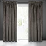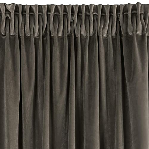 Eurofirany Villa Vorhang Samt Velvet Weich Kräuselband-1 STK. Edel Gardine Dick 290 g/m2 Elegant Glatt Einfarbig Flauschig Modern Klassisch Wohnzimmer Schlafzimmer Lounge, Grafit, 140x270cm