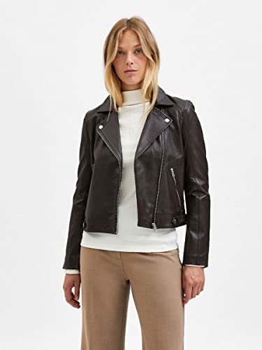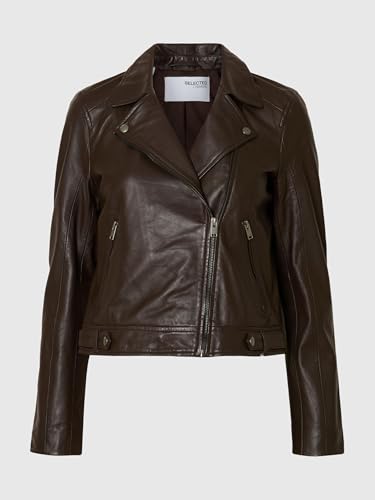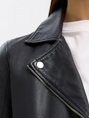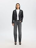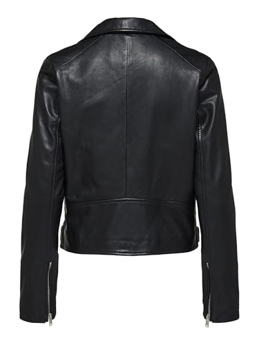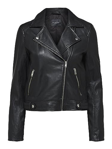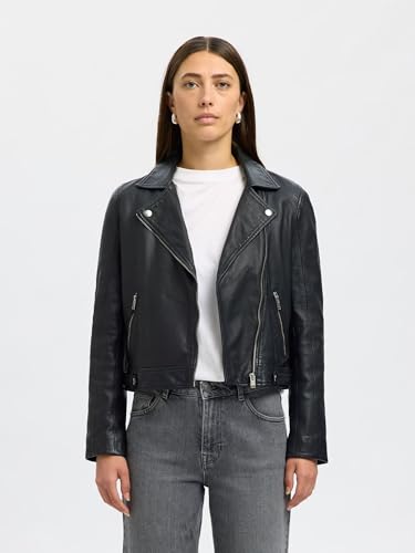 Damen Selected Kurze Leder Jacke | Lammleder Biker Jacket SLFKATIE | Cropped Style Coat, Farben:Schwarz, Größe:34