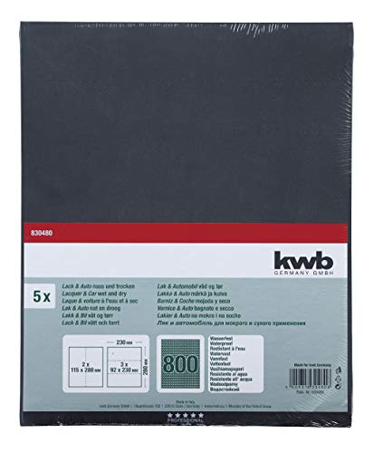 kwb wasserfester Schleifpapierbogen 230x280 mm aus Siliziumcarbid mit Körnung 800, hochwertiger Kunstharz-Verleimung und wasserfestem Trägermaterial für den feinen Karosserieschliff