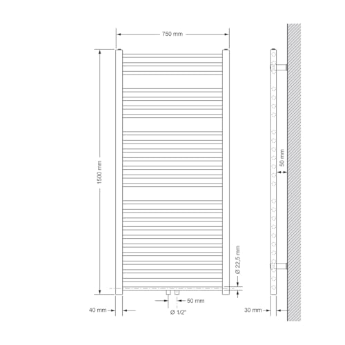 Ecd Germany - Badheizkörper 750 x 1500 mm Anthrazit gebogen mit Mittelanschluss - Design Heizkörper Handtuchwärmer Handtuchtrockner