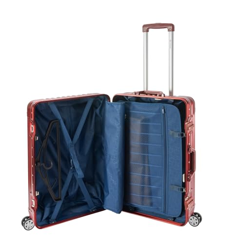 Travelhouse London · 2-teiliges Reisekoffer Set · Aluminium Rahmen · Polykarbonat Hartschale ·2 TSA Schlösser· Handgepäck-Koffer + Check-in · S-55cm, M-65cm · Vol. S-44L · M-67L · Rot