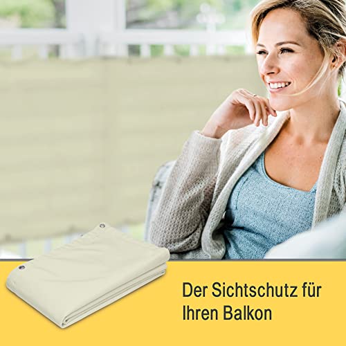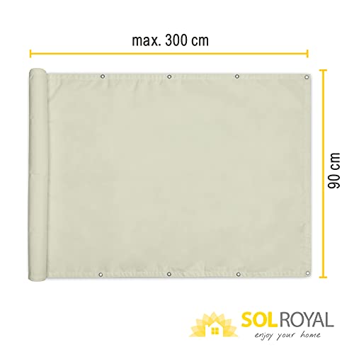 Sol Royal Balkon Sichtschutz PES SolVision PB2 90x300 cm Creme - Balkonumspannung mit Ösen & Kordel, wasserabweisend & witterungsfest - blickdichte Balkonbespannung 160 g/m² mit UV-Schutz