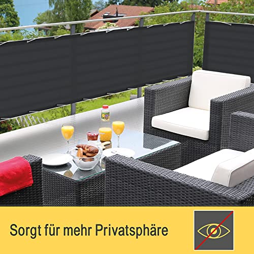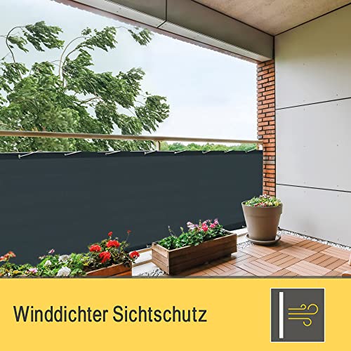 Sol Royal Balkon Sichtschutz PES SolVision PB2 90x500 cm Anthrazit - Balkonumspannung mit Ösen & Kordel, wasserabweisend & witterungsfest - blickdichte Balkonbespannung 160 g/m² mit UV-Schutz