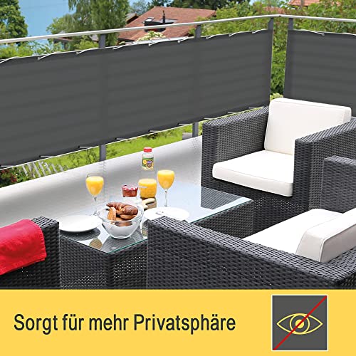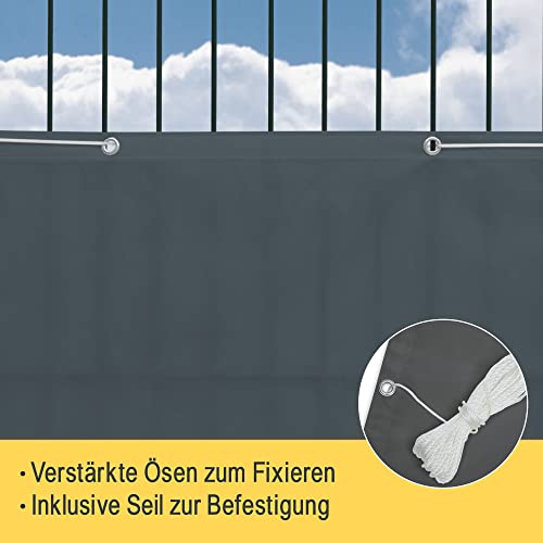 Sol Royal Balkon Sichtschutz PES SolVision PB2 90x500 cm Grau - Balkonumspannung mit Ösen & Kordel, wasserabweisend & witterungsfest - blickdichte Balkonbespannung 160 g/m² mit UV-Schutz