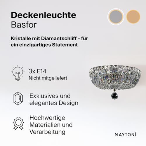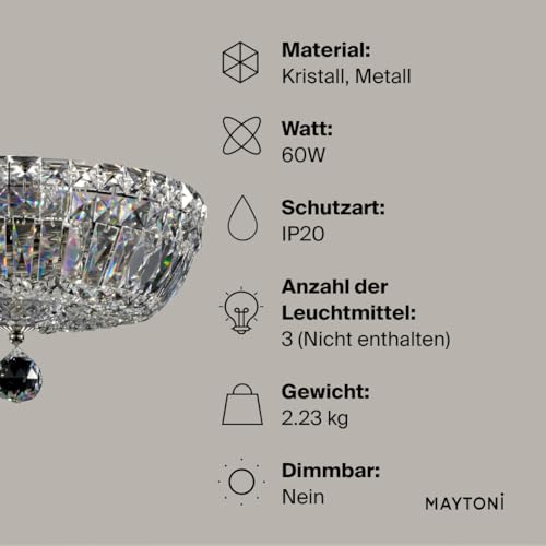 Maytoni Kronleuchter Basfor 3 x E14 – Hängelampe in Nickeloptik – Kristall Deckenleuchte LED für Wohnzimmer, Esszimmer, Schlafzimmer – moderne Deckenlampe