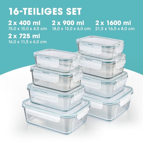 GOURMETmaxx Glas-Frischhaltedosen Klick-it 8er Set | Als Brotdose oder für Meal Prep | Spülmaschinen- Mikrowellen- und Gefrierschrankgeeignet | Aufbewahrungsbox mit Deckel