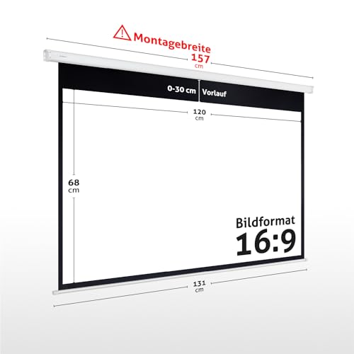 ESMART Economy EXM Motor-Leinwand 157 cm Bild 120 x 68 cm (54") | Format 16:9 | Fernbedienung | Heimkino elektrische Beamer Projektionsleinwand Motor Leinwand LCD