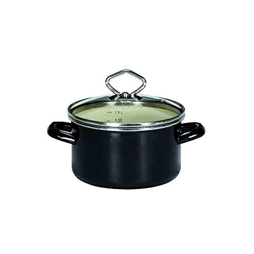 Fleischtopf KRÜGER, schwarz, H:11cm Ø:20cm, Töpfe, Literskala, Glasdeckel, Induktion