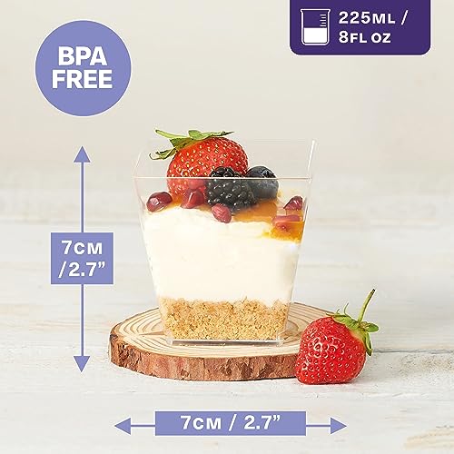 MATANA 48 Hartplastik Dessertschalen für Partys, Buffets (Quadratisch, 225ml) - Dessertgläser, Dessertbecher Eckig für Pudding, Nachtisch, Mousse, Tiramisu - Stabil & Mehrweg