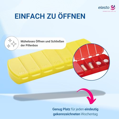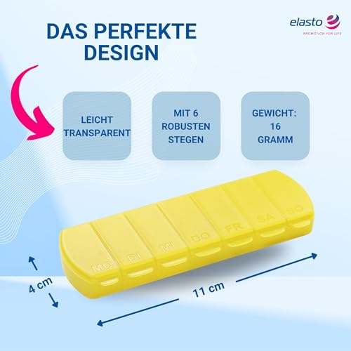 Aufbewahrungsdose 'Seven Days' - BPA-freie Tablettenbox 7 Tage - Medikamentenbox klein für Senioren - Pillendose mit 7 Fächern perfekt für Morgen, Mittags, Abends - Pill Box für die Woche (Gelb)