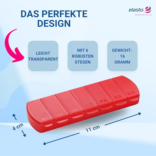 Aufbewahrungsdose 'Seven Days' - BPA-freie Tablettenbox 7 Tage - Medikamentenbox klein für Senioren - Pillendose mit 7 Fächern perfekt für Morgen, Mittags, Abends - Pill Box für die Woche (Rot)
