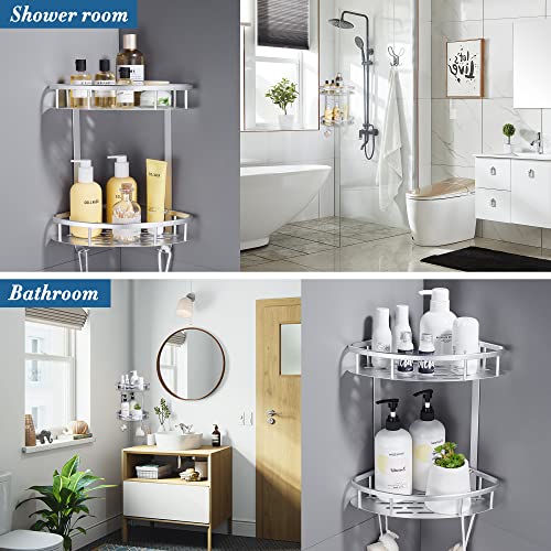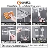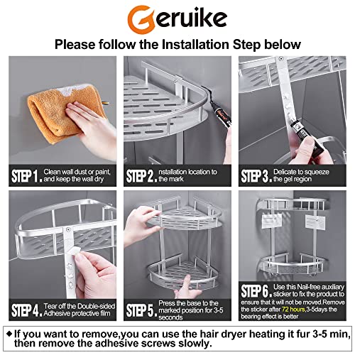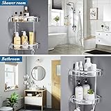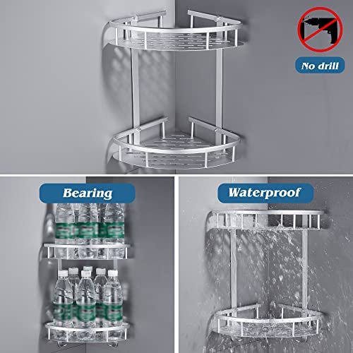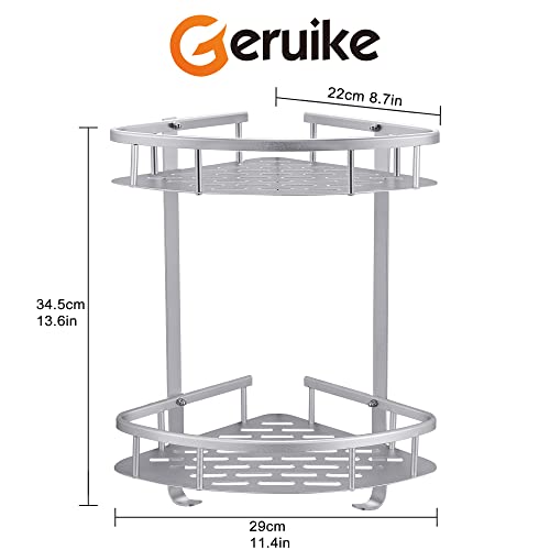 GERUIKE Duschkorb Ohne Bohren Ecke - Badezimmer Regal Silber - Duschregal Ecke Badezimmer Organizer, Duschkörbe mit Stark Kleber, Aluminium Eckregal Bad 2-Tier Duschablage Ohne Bohren